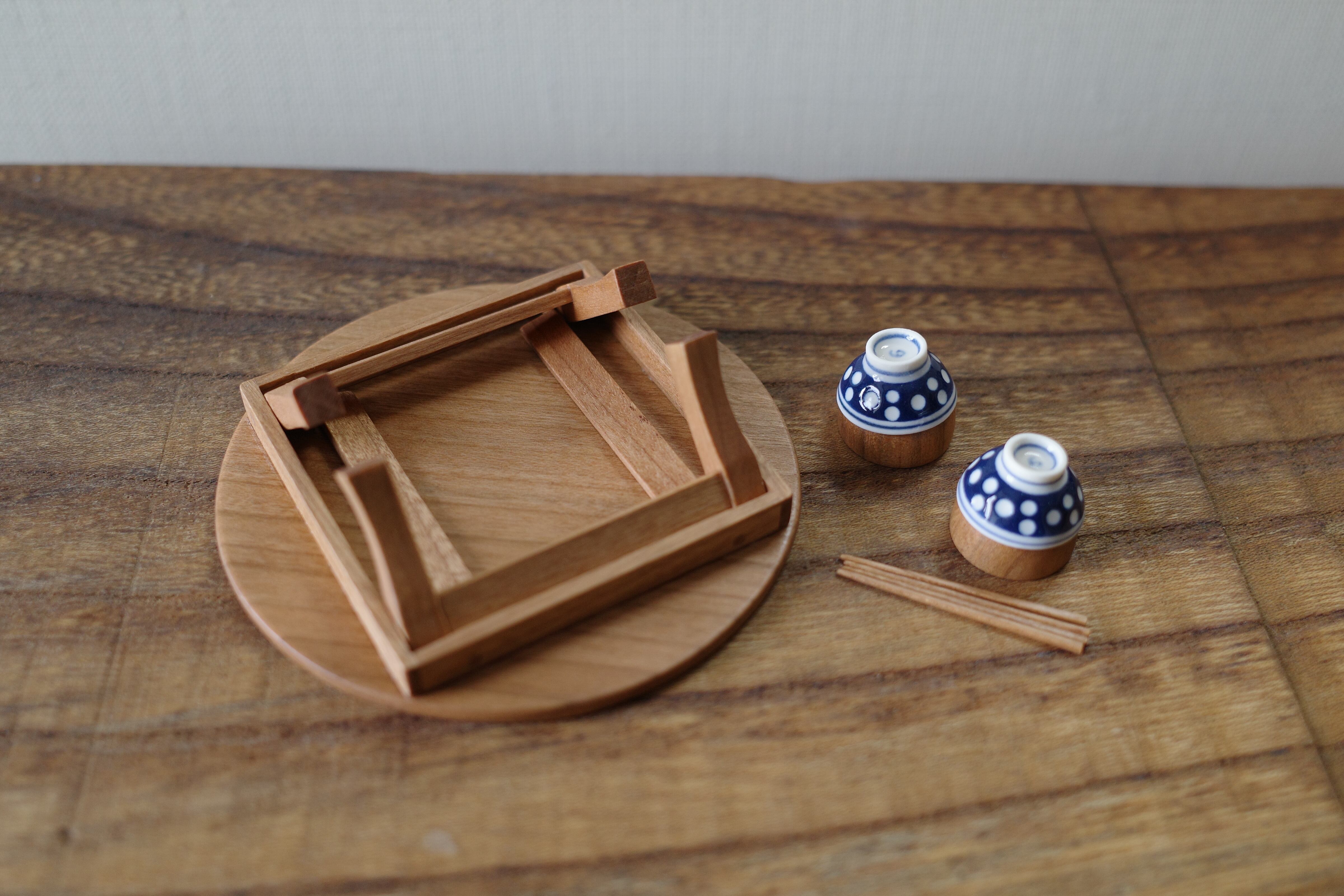 【ちゃぶ台×1・お茶碗×2(水玉・水玉)・汁椀×2・お箸×2】